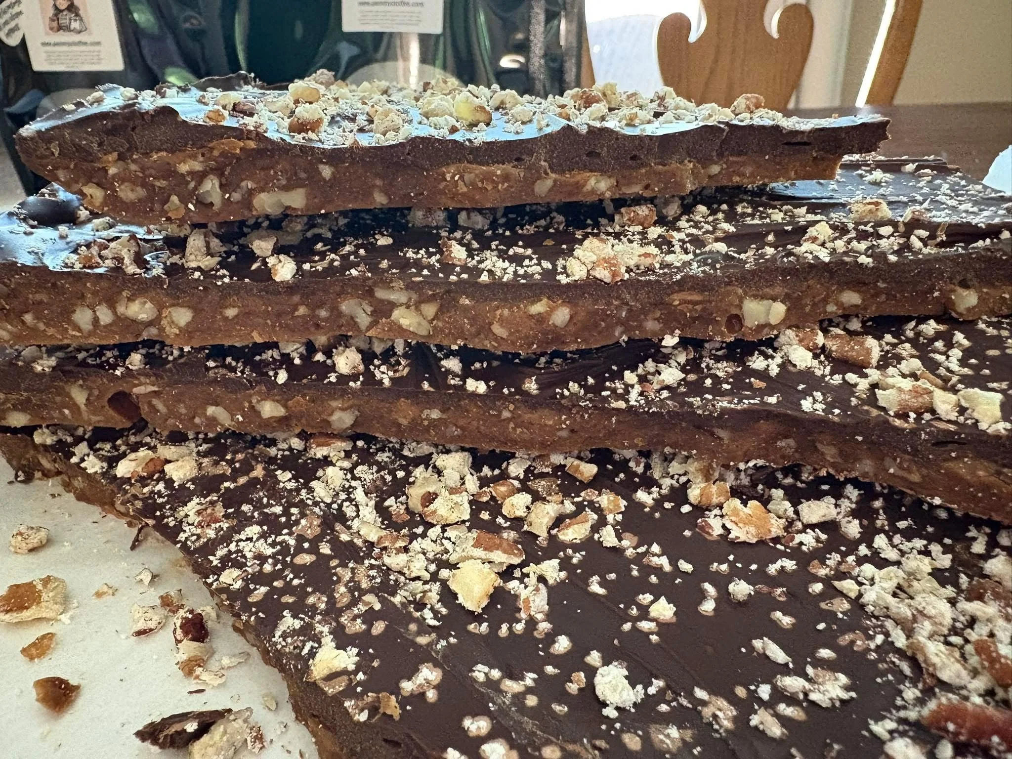 Eight delectable flavors to suit every taste! Donāt forget to use a COUPON CODE at checkout! 2FOR30 4FOR60 6FOR90 8FOR120 One Pound Christmas Tin $40.00 Original Milk Dark Milk SS Dark SS White Espresso Butterscotch Reeseās Purchase Added! Large (2 Pound) Give Thanks Tin Sale Price: $60.00 Original Price: $70.00 Sale Purchase Added! Peanut Butter/Chocolate (Limited Edition) $20.00 Purchase Added! 1/2 Pound Bag - Original $18.00 Purchase Added! 1/2 Pound Bag - Milk Chocolate with Sea Salt $18.00 Purchase Added! 1/2 Pound Bag - Dark Chocolate with Sea Salt $18.00 Purchase Added! 1/2 Pound Bag - Milk Chocolate $18.00 Purchase Added! 1/2 Pound Bag - Espresso $18.00 Purchase Added! 1/2 Pound Bag - Dark Chocolate $18.00 Purchase Added! 1/2 Pound Bag - White Chocolate $18.00 Purchase Added! 1/2 Pound Bag - Butterscotch $18.00 Purchase Added! 1 Pound Heart Tin $40.00 ORIG MILK DARK MILKSS DARKSS WHT ESP BTRSC Reeseās Purchase Added! Medium (1.5 Pound) All Occasion Tin $53.00 Happy Birthday Valentine's Day Easter St Patrick's Day Mother's Day Father's Day Happy Anniversary Congratulations Purchase Added! Large (2 Pound) All Occasion Tin $70.00 Happy Birthday Valentine's Day Easter Mother's Day St Patrick's Day Father's Day Happy Anniversary Congratulations Purchase Added! Large (2 Pound) Merry Christmas Tin $70.00 Purchase Added! Pammy Z's Toffee T-Shirt from $25.00 Select Size Small Medium Large XLarge XXLarge XXXLarge Purchase Added!